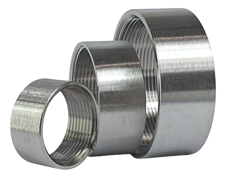 - Short stainless steel pipe coupling, machined from pipe, type R, thread BSPP (G), grade: 316, height: 17mm