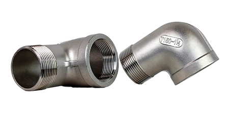 - Złączka kolankowa 90°, w rozmiarze 1 1/2'' | DN40 z gwintem wewnętrznym i zewnętrznym, drążona, z gwintem BSPT | stal nierdzewna 316