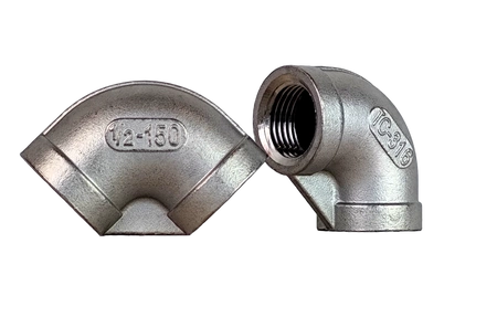 Kolanko gwintowane 90° w rozmiarze 1/2'' w wersji GW–GW, wykonane ze stali nierdzewnej A4 (316 / 1.4401) zgodnie z normą ASTM A351. Element odlewany, przeznaczony do łączenia odcinków rur z gwintem wewnętrznym po obu stronach (gw. żeński - gw. żeński), w instalacjach ciśnieniowych i przemysłowych. Gwinty wewnętrzne stożkowe umożliwiają trwałe i szczelne połączenie z złączkami męskimi zgodnymi z normą ISO 7-1 / EN 10226.
