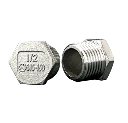- Korek (zaślepka) R sześciokątna do wkręcania (gwint zewnętrzny) 1/2'' odlewany ze stali nierdzewnej AISI 316