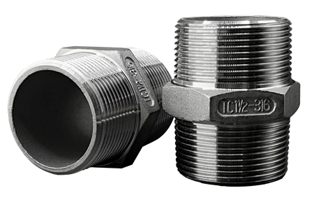 Nypel dwustronny 1 1/2'' z nakrętką sześciokątną wykonany ze stali nierdzewnej 316 to precyzyjny element instalacyjny przeznaczony do łączenia dwóch odcinków rur lub armatury z gwintem stożkowym BSPT. Dzięki zastosowaniu wysokogatunkowej stali kwasoodpornej AISI 316, złączka charakteryzuje się znakomitą odpornością na korozję, działanie wilgoci, pary wodnej i wielu związków chemicznych.